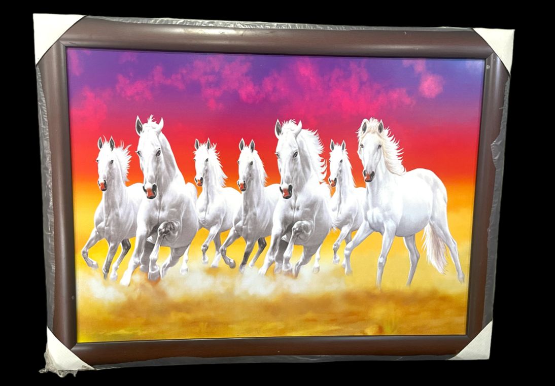 - 7 Running Horse /Lucky Seven Running Horses/Sunrise 7 Running Horses Vaastu , UV Textured Home Decorated Painting With Frame/Bedroom, Office, Hotels, Drawing Room Wooden Painting